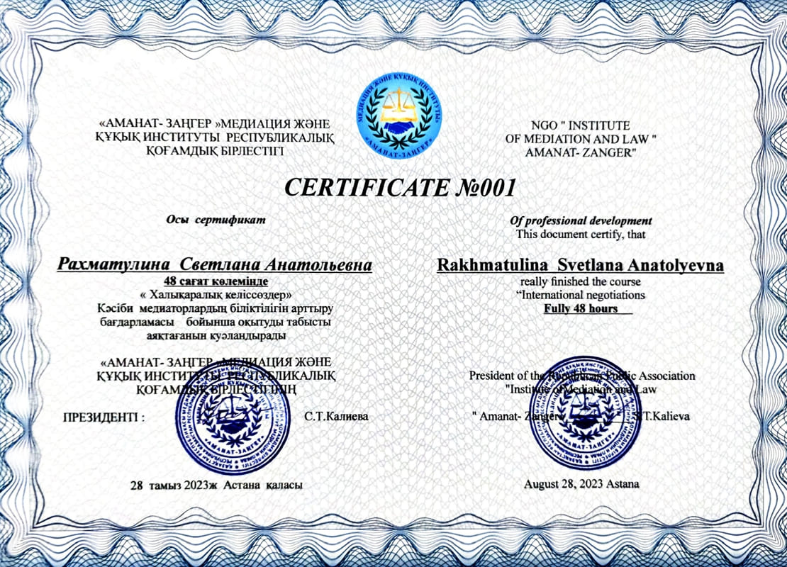 Наша компания специализируется на предоставлении юридических услуг, охватывая всю территорию Республики Казахстан. Мы гордимся тем, что в нашем штате работают только высококвалифицированные специалисты: адвокаты, юристы и профессиональные медиаторы.