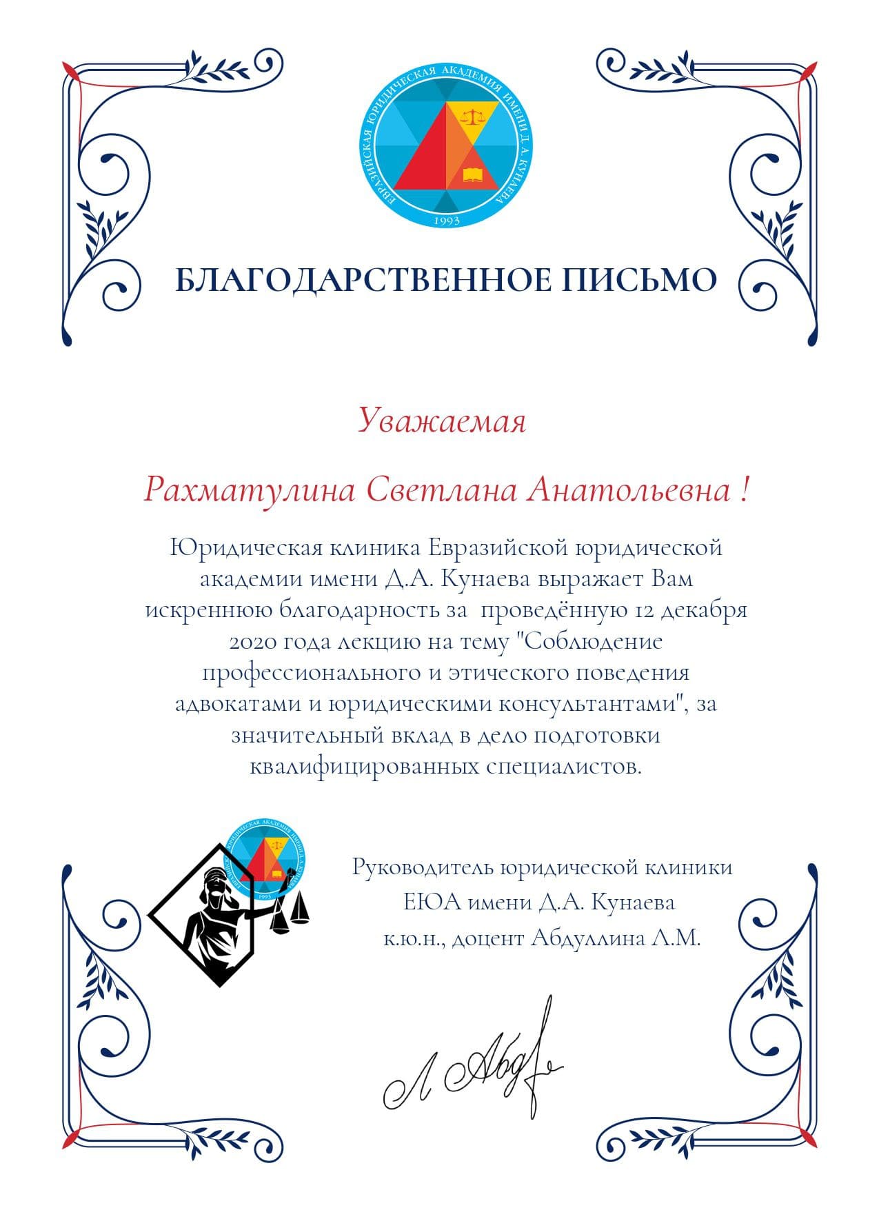 Здравствуйте! Меня зовут Рахматулина Светлана Анатольевна и я являюсь руководителем юридической компании «Law Expert».